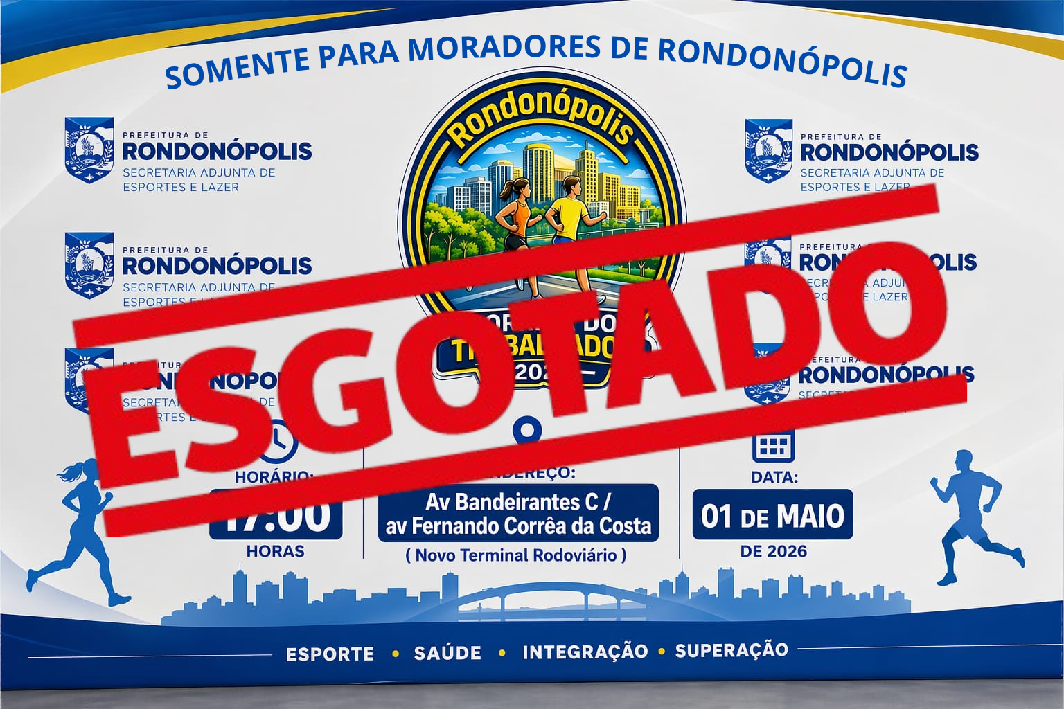 Artigo 1º – A CORRIDA DO TRABALHADOR será realizada na SEXTA FEIRA, 01 DE MAIO das 2026 às 17:00 HORAS NA AVENIDAFERNANDO CORREA DA COSTA, EM FRENTE AO NOVO TERMINAL RODOVIARIO, com o apoio dos órgãos municipais de Rondonópolis.